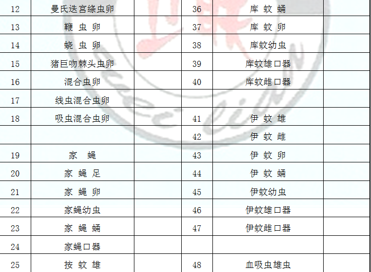 1 蠅針刺標(biāo)本(麻蠅、金蠅、綠蠅)   26 姜片蟲浸制標(biāo)本