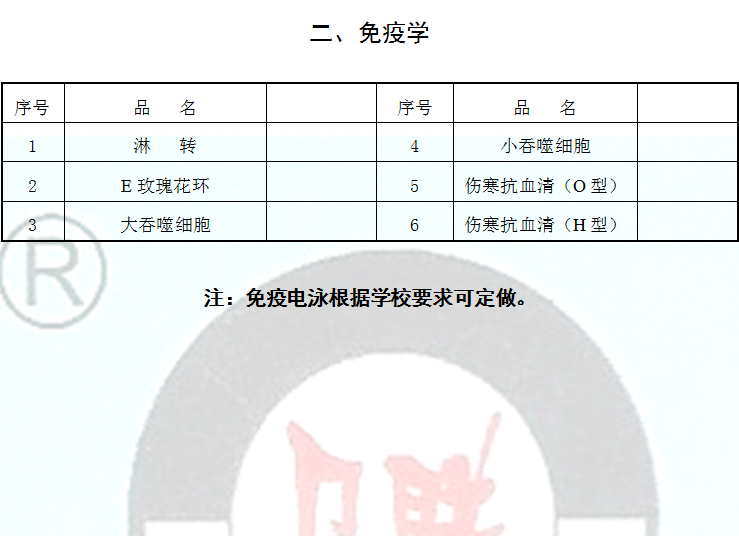 注:免疫電泳根據(jù)學(xué)校要求可定做。